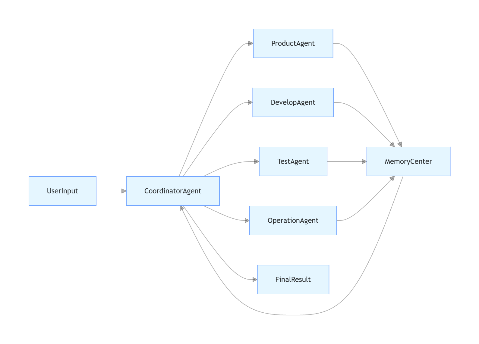 对于复杂的多角色任务,多智能体协作模块会将整体目标拆解为不同角色智能体的子任务,通过协调者Agent管控整个协作流程,多个智能体并行或串行执行,共享记忆中心的内容,协同完成整体目标。