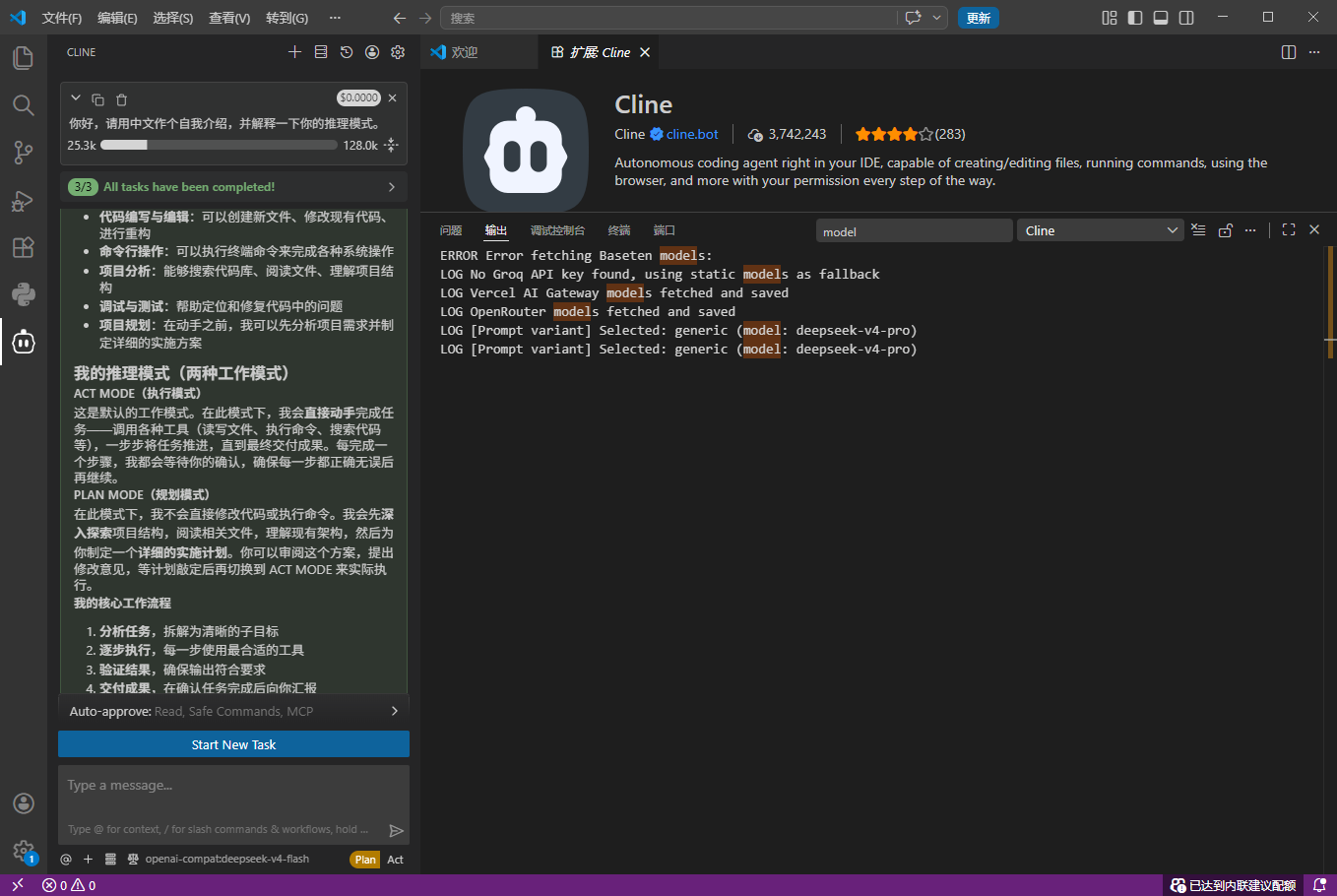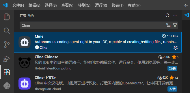 1、在vscode中安装Cline