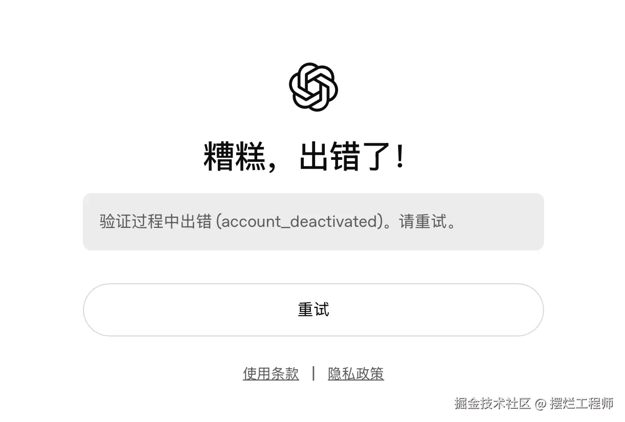 这也就是你的 GPT 账号出现 "account_deactivated" 的原因。