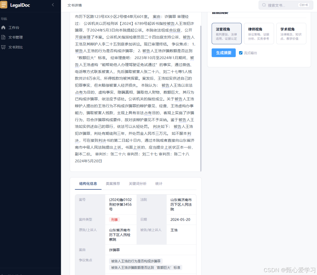 - 开发基于 RAG (检索增强生成) 的智能问答模块,直接回答文书相关问题。