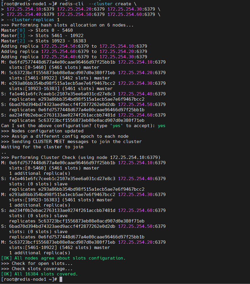 [root@redis-node1 ~]# redis-cli --cluster create \