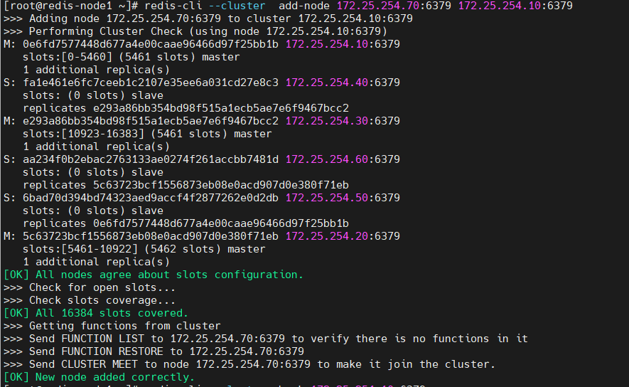 >>> Adding node 172.25.254.70:6379 to cluster 172.25.254.10:6379