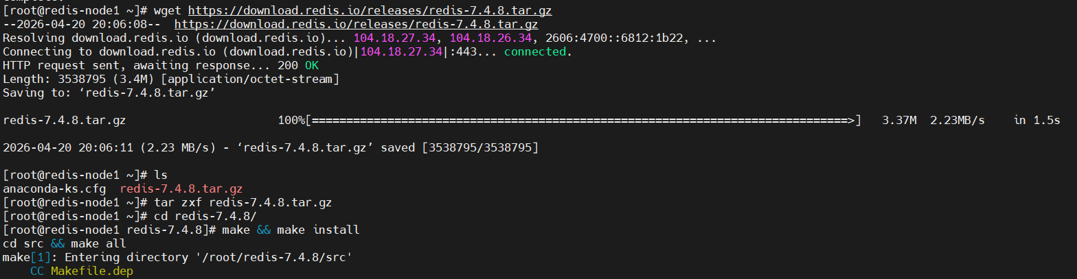 [root@redis-node1 ~]# wget https://download.redis.io/releases/redis-7.4.8.tar.gz