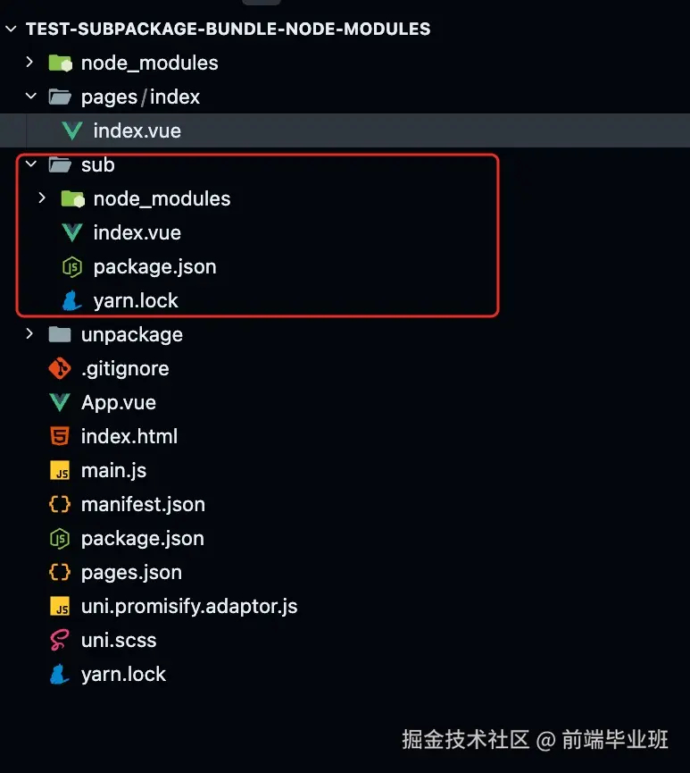 首先进入到分包的根目录,创建一个 package.json 文件,这里写分包需要用到的依赖,然后安装依赖