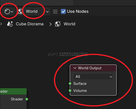 请确保从World Output(世界着色器编辑器)中断开所有后期处理,以移除晕影。(特定应用于立方体立体模型)