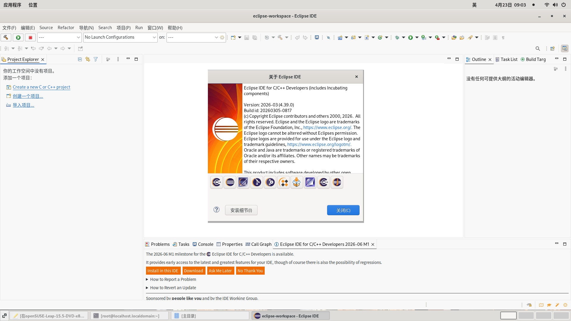 在openSUSE-Leap-15.6-DVD-x86_64中使用eclipse-cpp-2026-03-R-linux-gtk-x86_64
