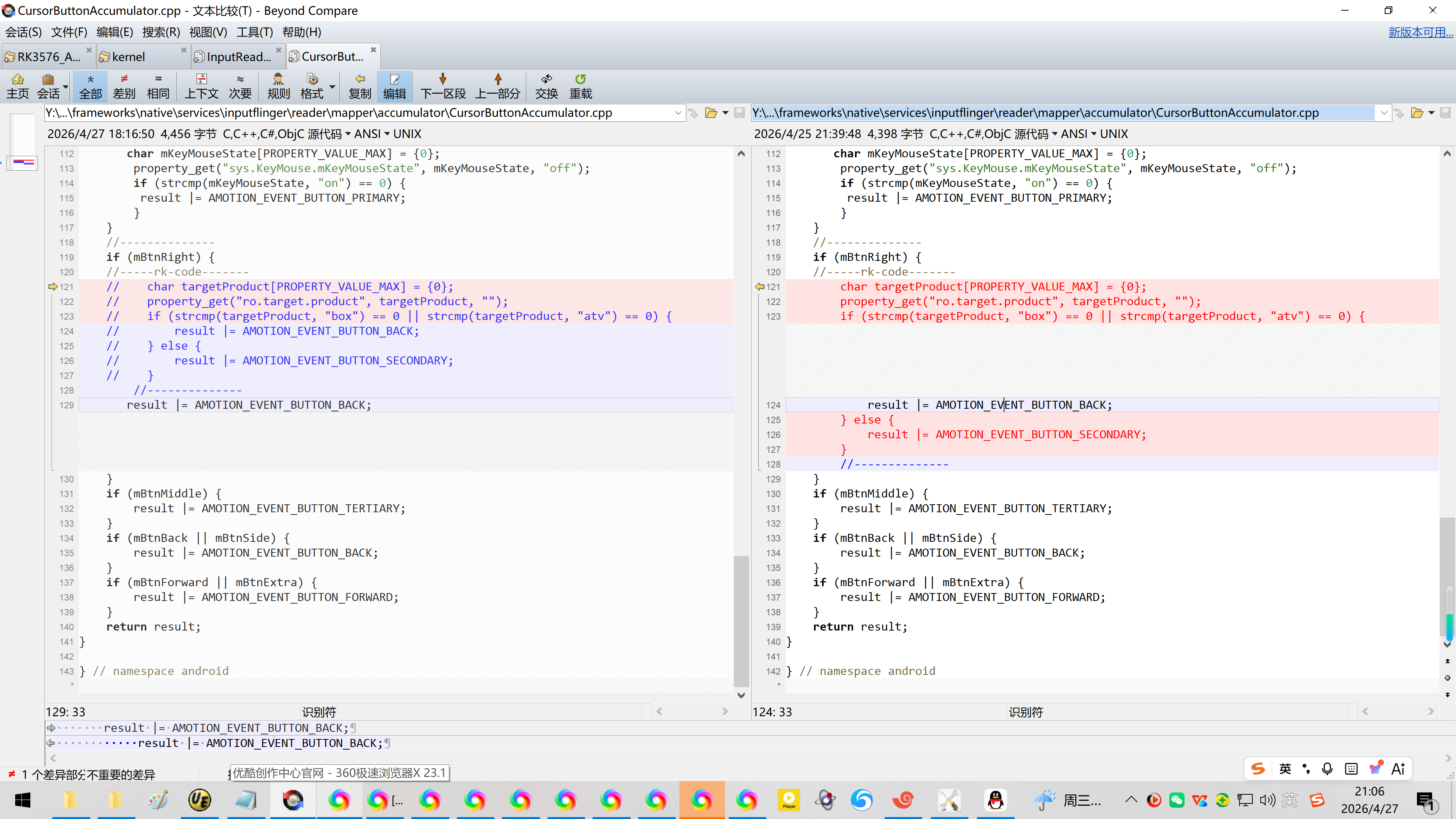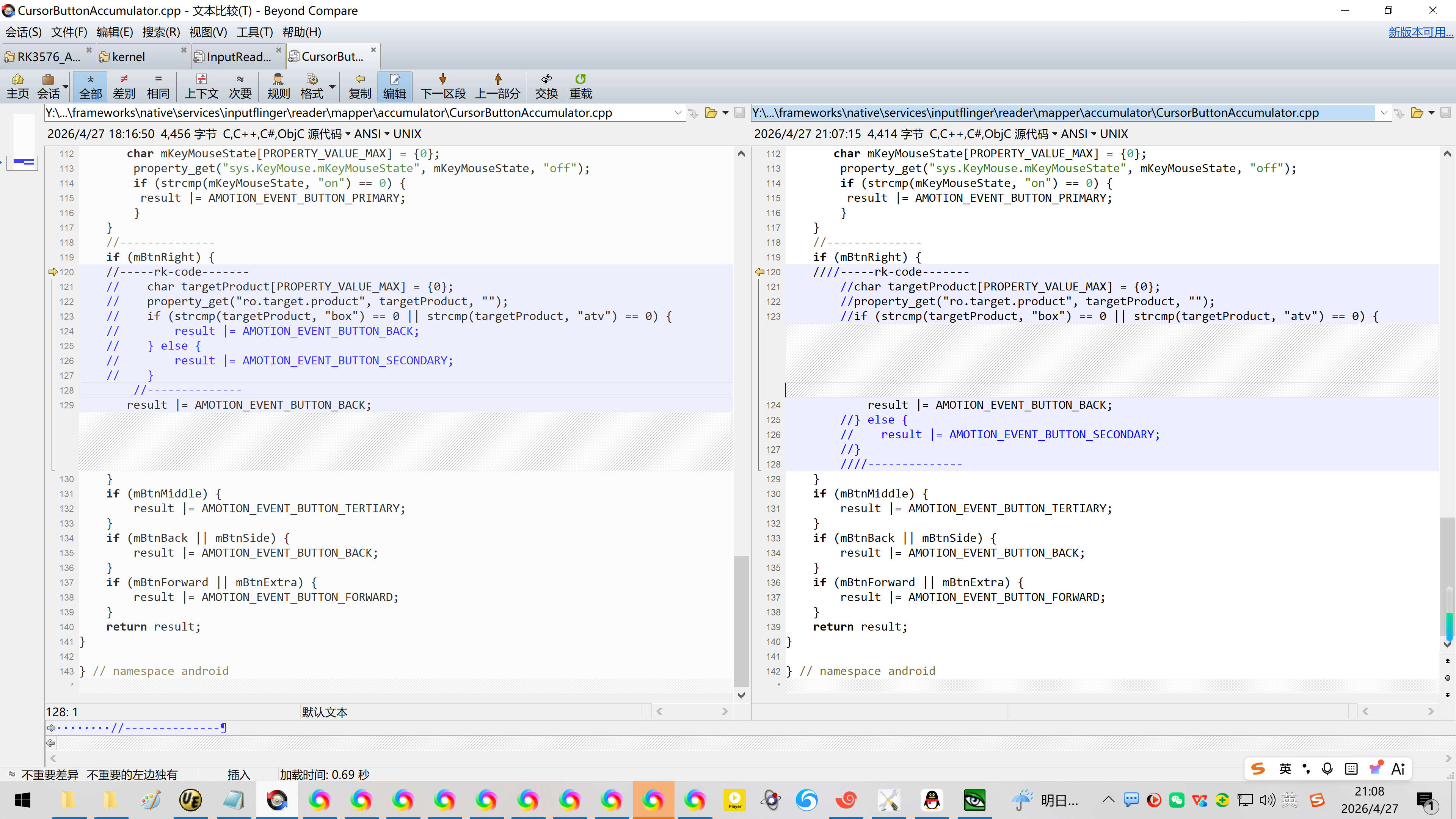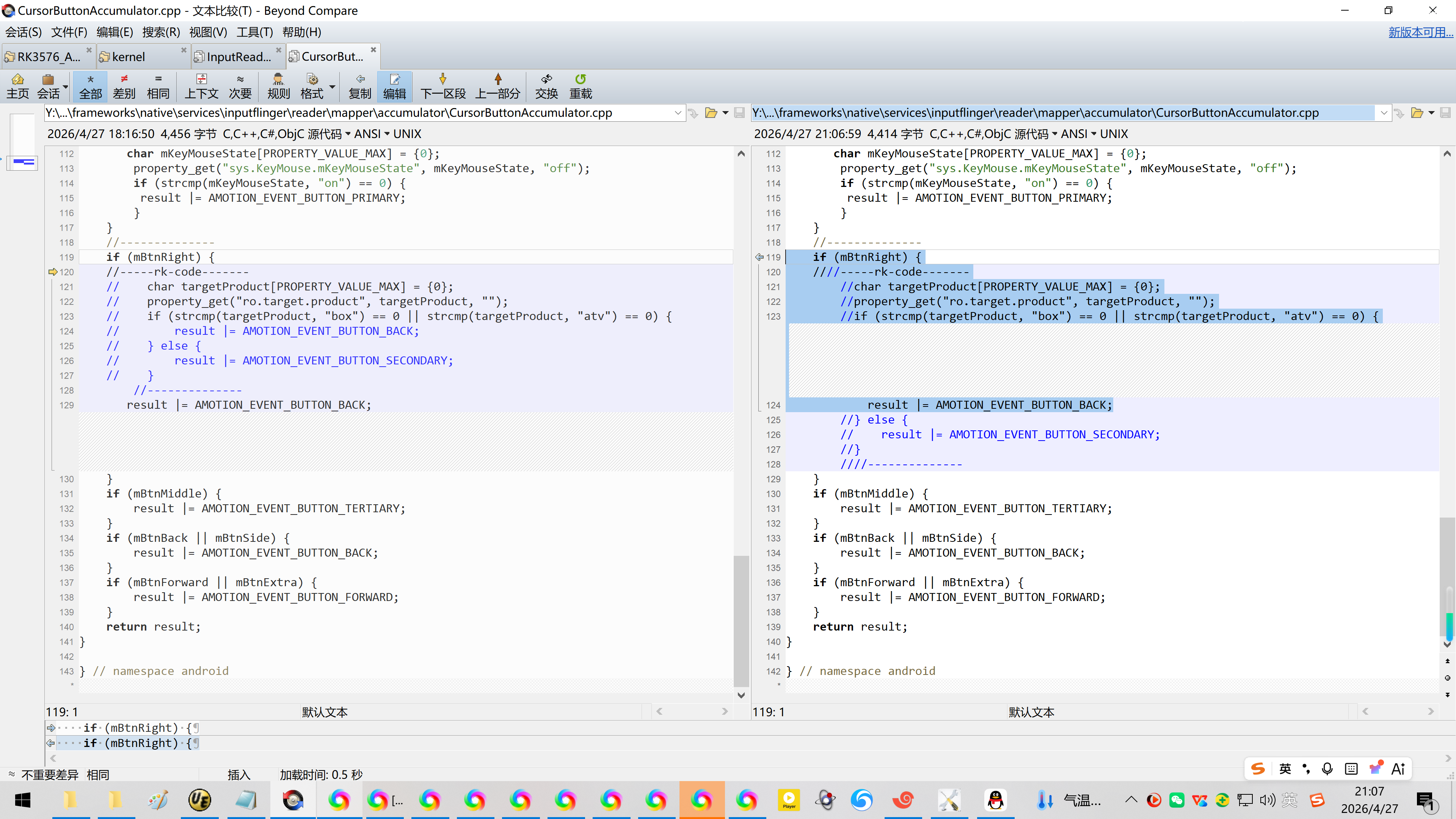 这个方法直接修改Android输入系统的核心逻辑,在所有Android版本上都有效。主要的修改点在于 InputReader.cpp 文件。