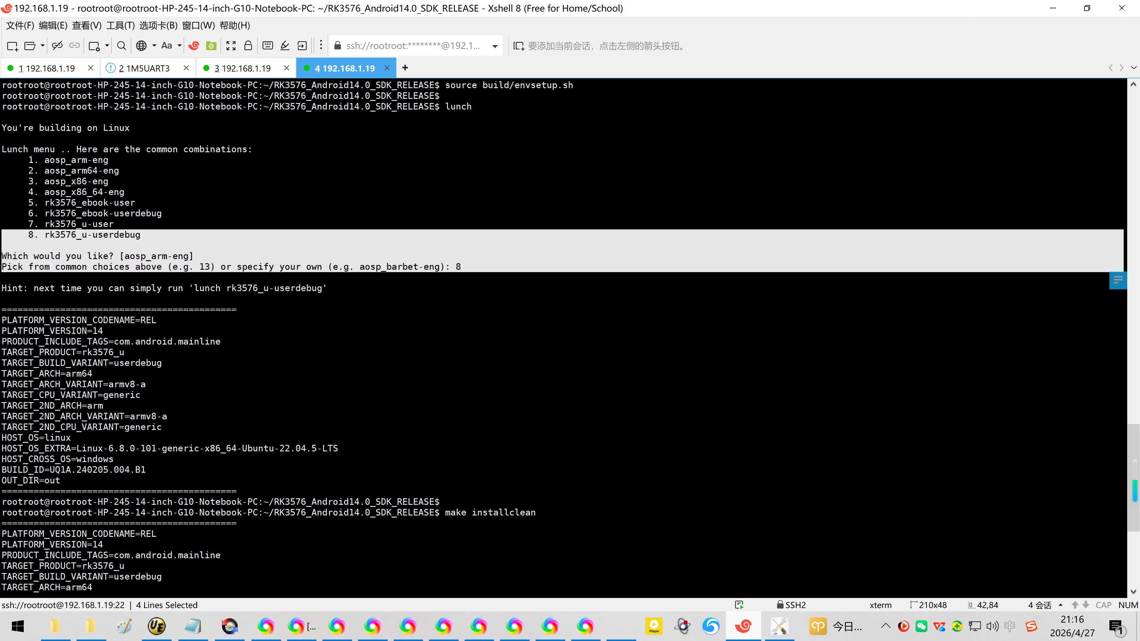 rootroot@rootroot-HP-245-14-inch-G10-Notebook-PC:~/RK3576_Android14.0_SDK_RELEASE$ lunch