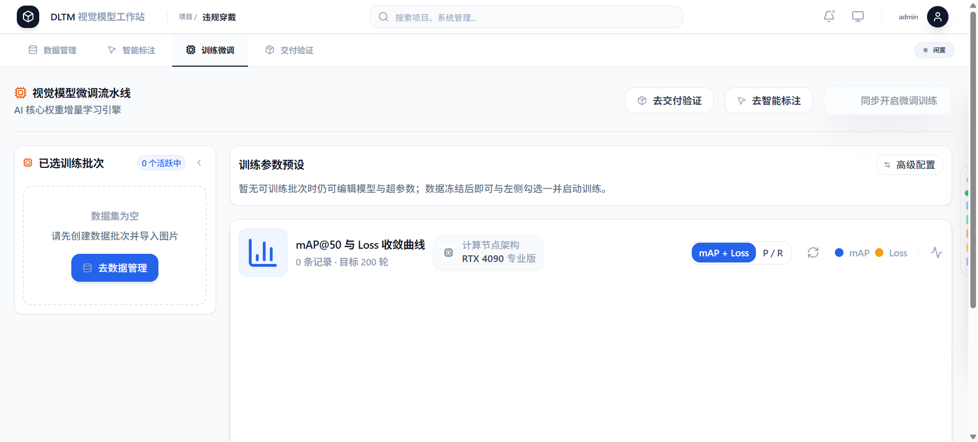 传统AI训练依赖专业算法团队与复杂代码,中小企业望而却步。企业私有化AI部署方案DLTM彻底重构训练流程,全程可视化、零代码操作,业务人员无需Python基础、无需GPU环境配置,三步即可完成模型开发:批量上传多格式数据、AI辅助标注自动生成标签与框选(减少70%人工工作量)、一键启动训练。