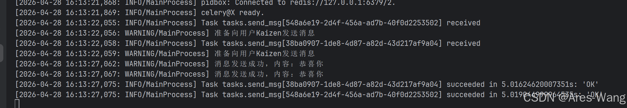 print(f"消息发送成功,内容:{msg}") # 该输出会显示在 worker 日志中