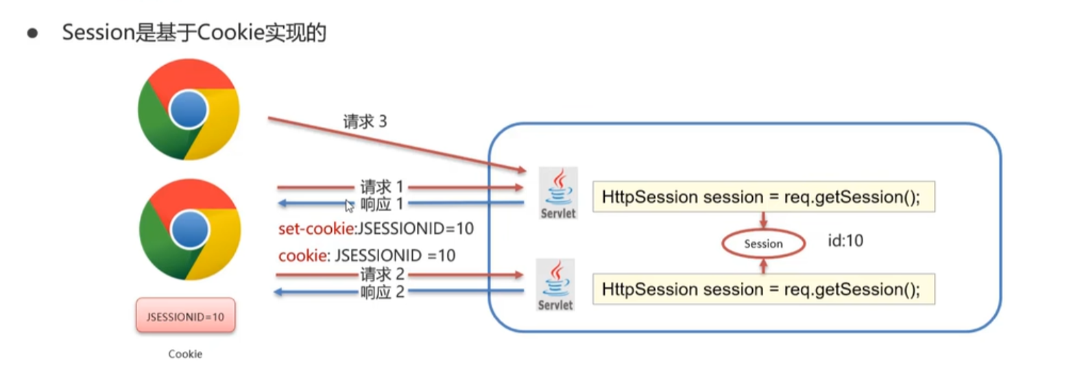 一次会话对应的session有一个id,而这个id会像cookie对象一样在每次对话之间传来传去
