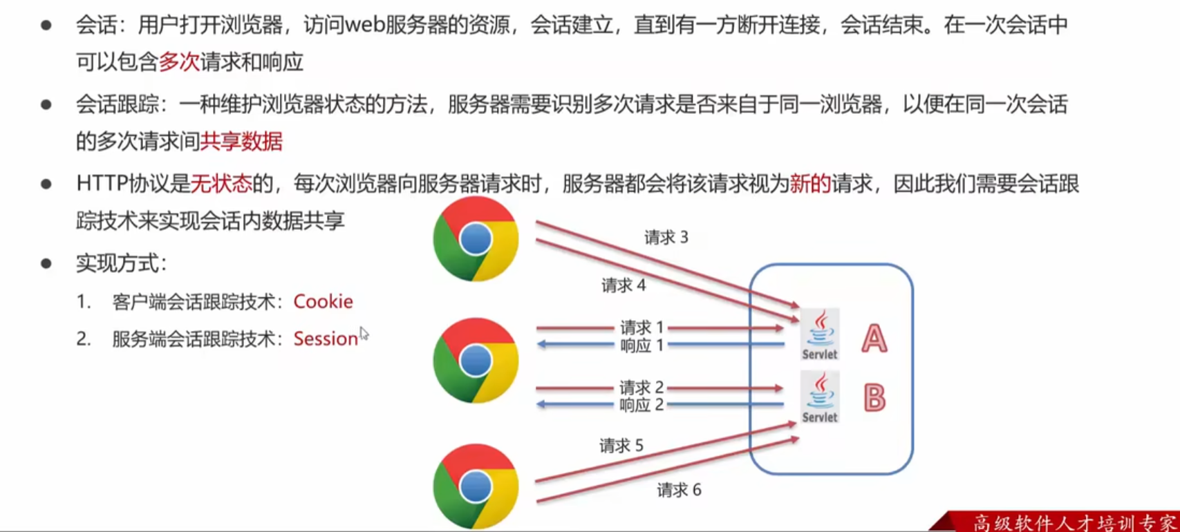 一个浏览器会启动一次会话,一次会话可以产生多个请求,但是如何区分每次请求来自哪次回话,就要用到会话跟踪技术