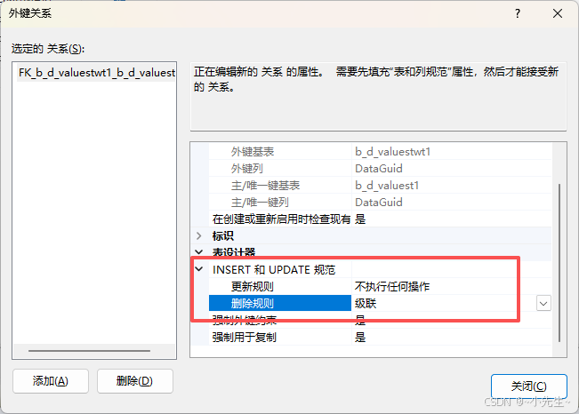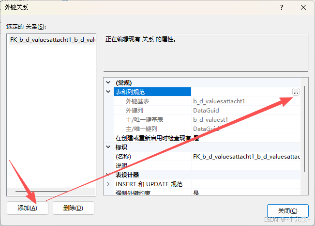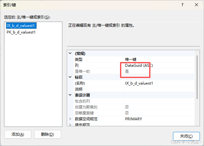 主表设计页面------ 右击鼠标------>索引/键------添加------>选择设置的外键列------设置是唯一的为是