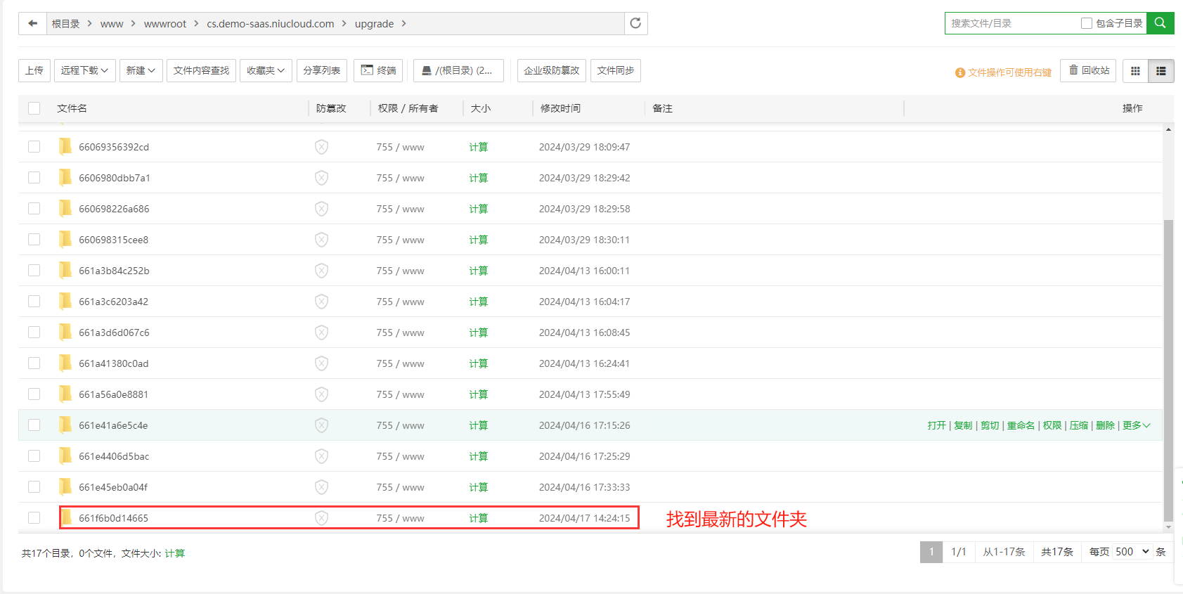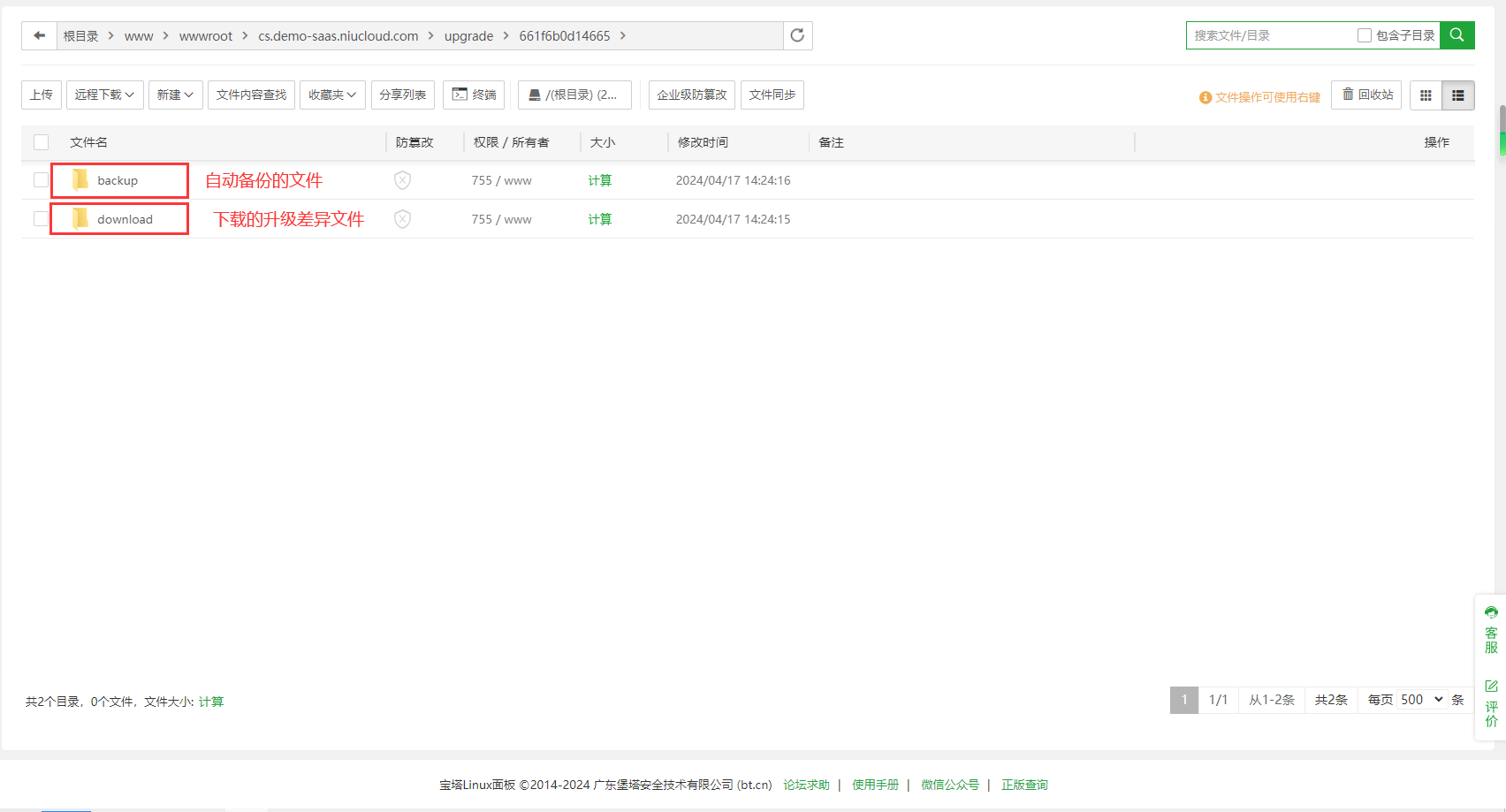 登录宝塔linux面板,在网站中找到升级的站点,点击根目录,进入upgrade文件夹