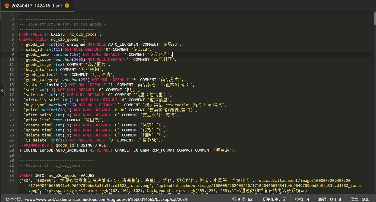 打开如下图所示路径下的备份数据库文件,复制sql语句