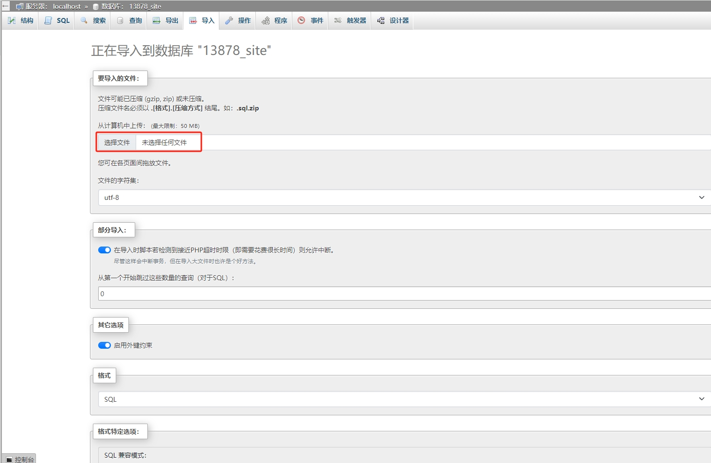 将sql文件下载后,在数据库中选择导入,点击选择文件,点击导入即可上一版本的数据。