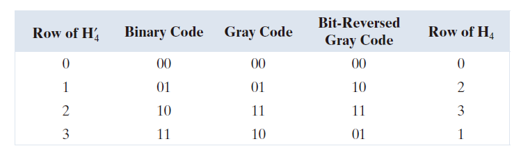 因此,根据公式(7-106),4 × 4 的列率排序 Walsh-Hadamard 变换矩阵为