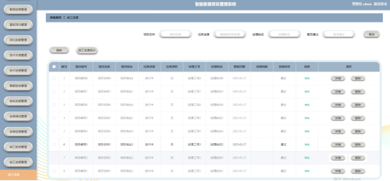 竣工验收管理:系统支持对智能家居项目竣工验收环节的管理,用户可以记录竣工验收的任务内容、分配日期、客户信息等,确保竣工验收工作的顺利进行。