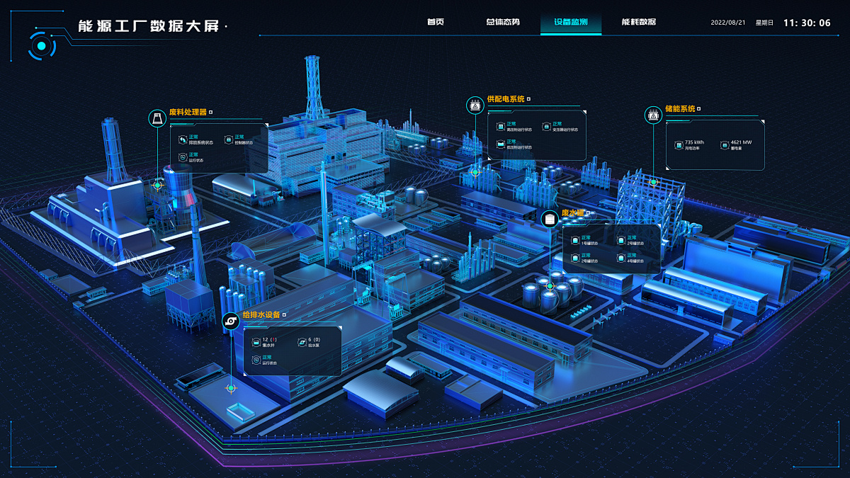 自定义配置设备状态、OEE指标、故障统计、能耗分析等多维度数据看板,支持PC端、移动端、大屏端多终端展示。通过3D可视化、热力图、趋势分析等方式,为管理层提供直观的决策依据。