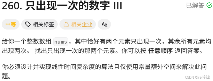 260. 只出现一次的数字 III - 力扣(LeetCode)