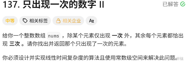 137. 只出现一次的数字 II - 力扣(LeetCode)