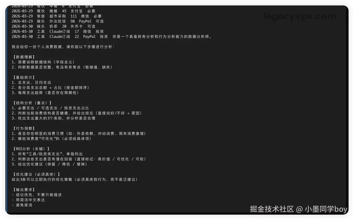 其实我自己每个月在 AI 上花的钱不少,Claude、GPT、GLM 都有订阅。但其实有很大一部分预算其实是花在处理生活琐事上的------记账、外卖归类、做一个消费数据分析。这种活差不多每天都得跑一遍,所以token 烧得也不少,尤其是有时候开了深度思考的模型反而更容易给错数据。
