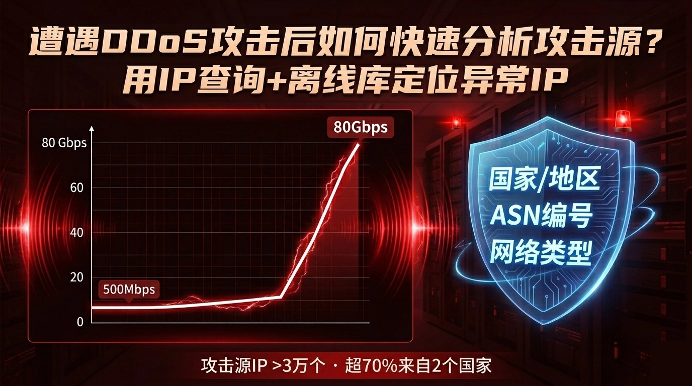 事后我们复盘了全部攻击日志,用IP查询工具追踪了攻击源IP的归属地、ASN和网络类型,发现超过70%的攻击流量来自某两个国家,且IP集中在3个ASN号段内。若能快速通过IP查询定位攻击源,可提前生效阻断策略。本文拆解DDoS应急响应中,利用IP查询工具分析攻击源的3个核心实操步骤。