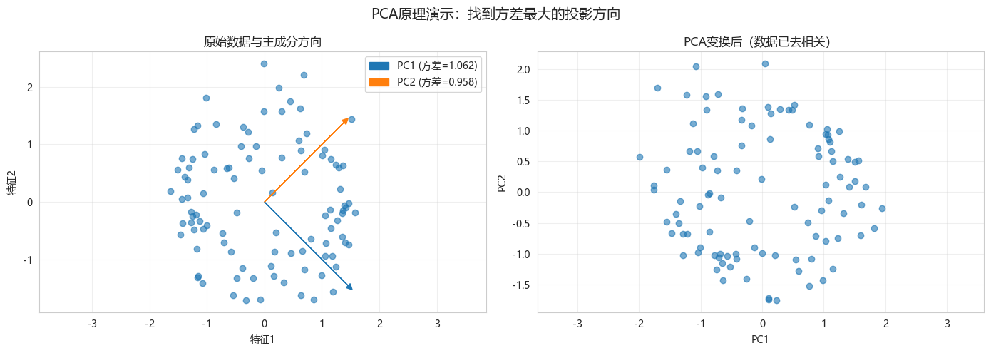 print("\nPCA的一个重要性质:新特征之间相互正交(无相关性)")