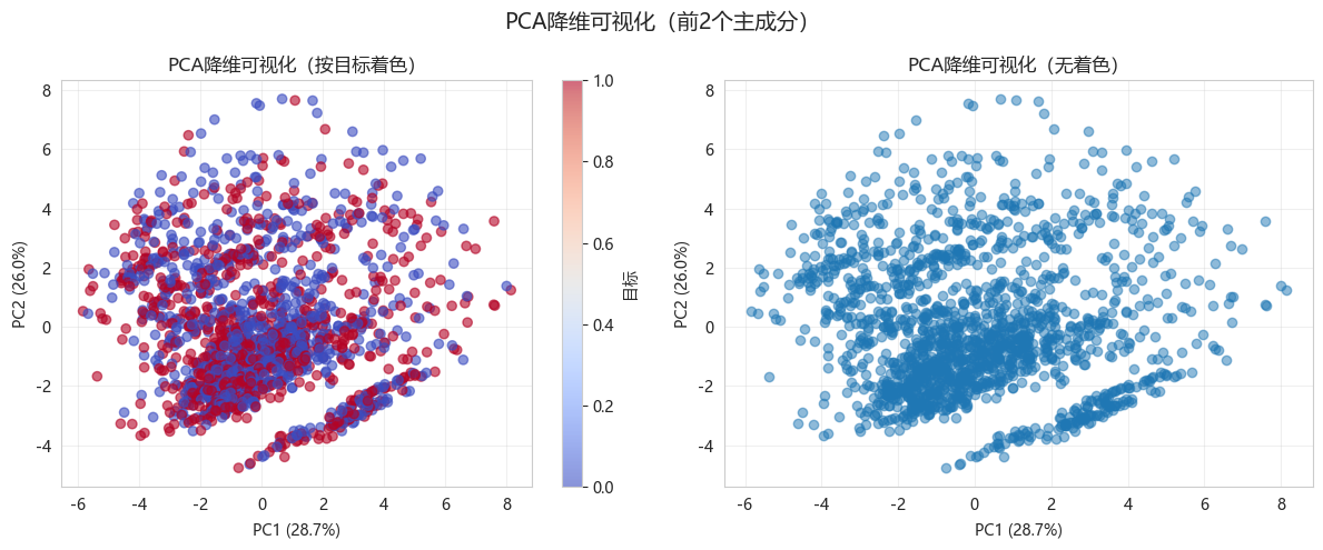 plt.suptitle('PCA降维可视化(前2个主成分)', fontsize=14)