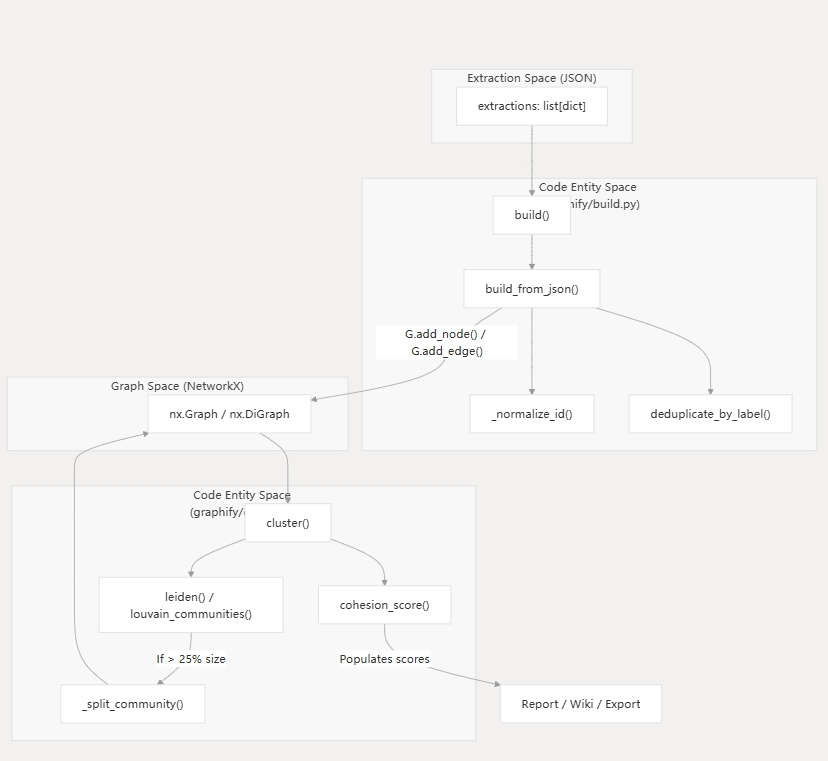 将提取内容组装成 NetworkX 图,并应用 Leiden 社区检测 |