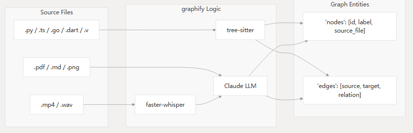 graphify 通过几个专门的子系统,弥合了原始源文件与结构化图数据之间的差距: