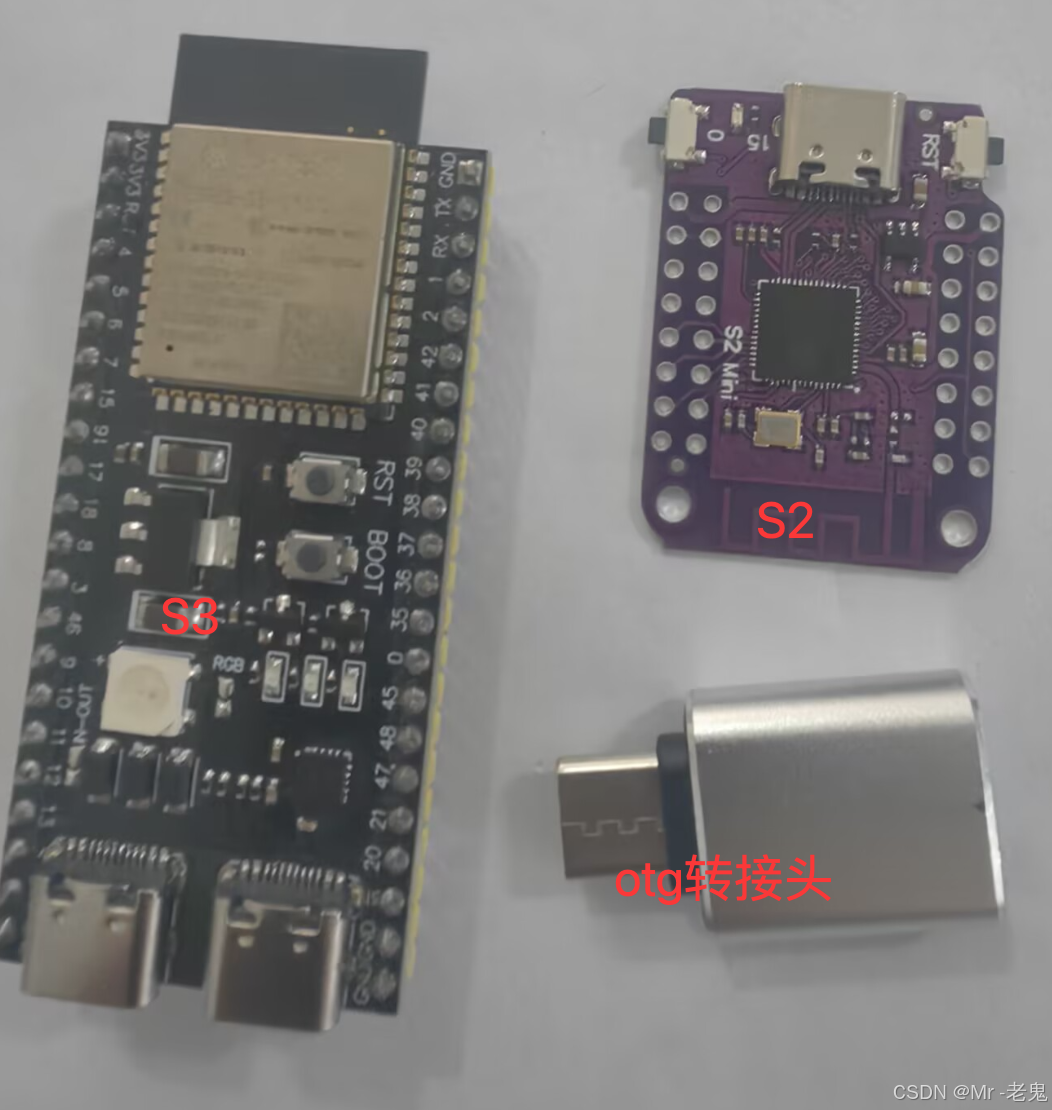 ESP32-S3 烧录用COM口,连接手机必须插USB-OTG口,不要插错接口导致无法识别!