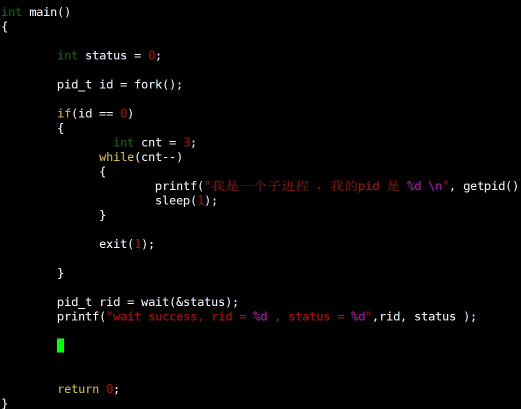 wait 这个进程调用呢,就是可以来回收子进程的。他的返回值是这个返回被等待成功的进程的 pid_t ,如果失败返回 -1.