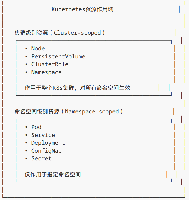 | 命名空间 | 逻辑隔离、集群级vs命名空间级资源、 ResourceQuota配额 |