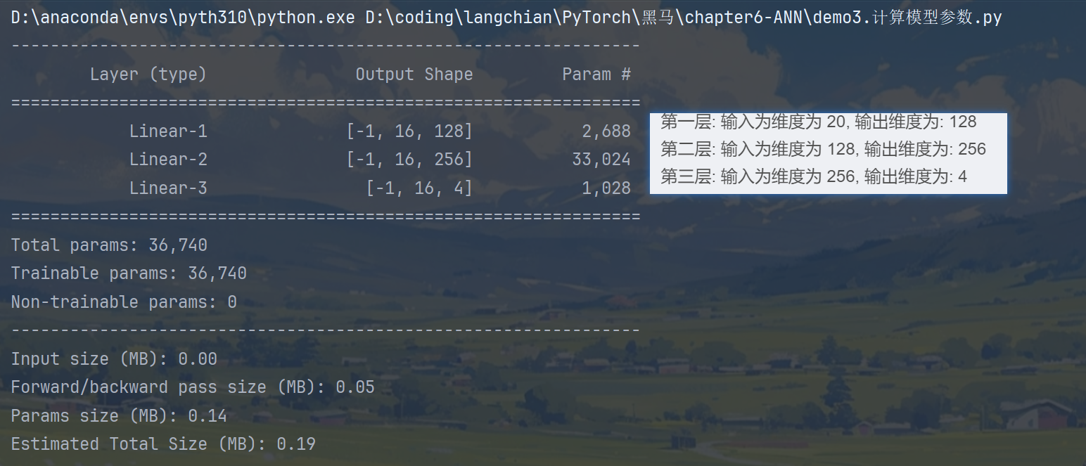 # 参1: 模型对象. 参2: 输入数据的形状(批次大小, 输入特征数), 每批16条, 每条20列特征