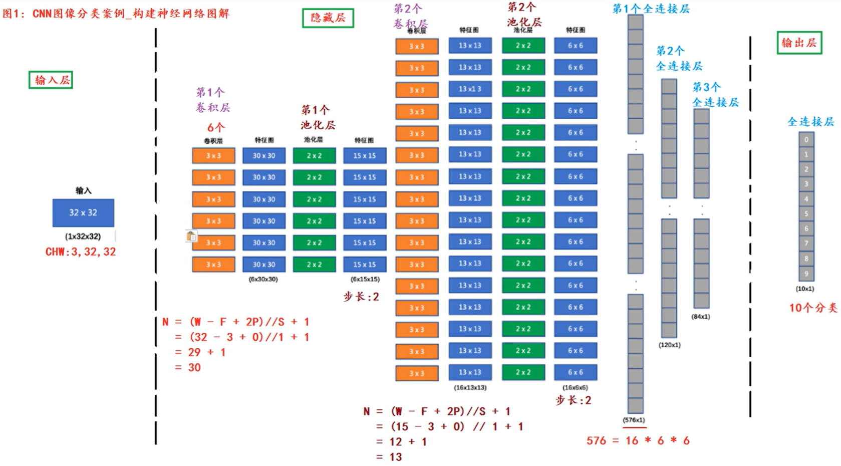 3、第一个池化层输入 30x30, 输出 15x15, Kernel Size 为: 2x2, Stride 为: 2