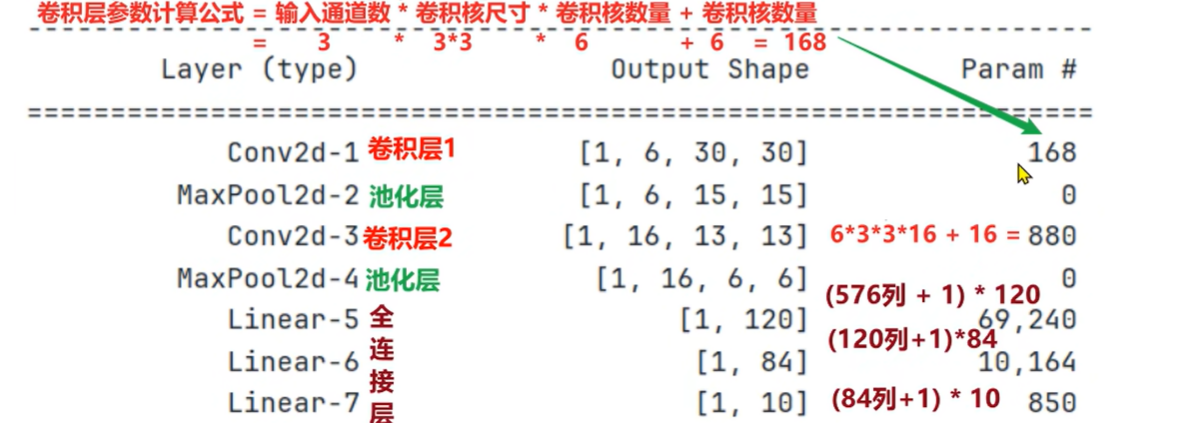 2、第一个卷积层输入 3 个 Channel, 输出 6 个 Channel, Kernel Size 为: 3x3