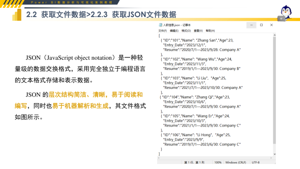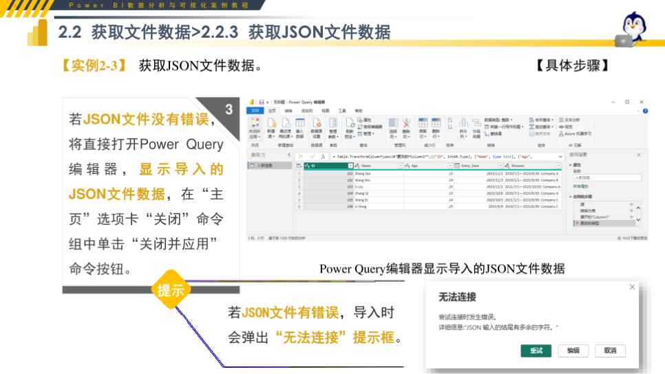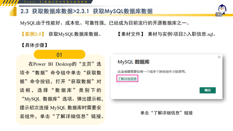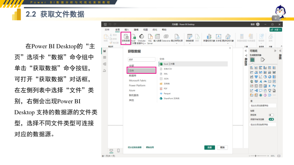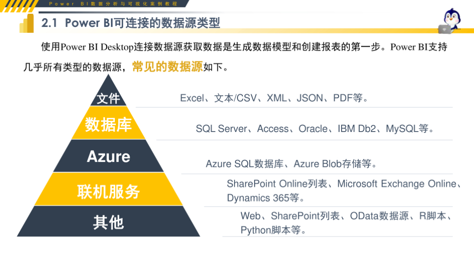 重要性总结:本文档是 Power BI 数据获取环节的标准化实操教程,系统讲解数据源类型、文件数据、数据库数据与 Web 数据的完整获取方法。内容覆盖 Excel、CSV、JSON、文件夹合并、MySQL、SQL Server、网页数据等主流接入方式,搭配 step-by-step 操作实例与易错提示,清晰说明导入、转换、合并、连接模式等关键技能。教程结构清晰、零基础可学,可直接用于课堂教学、企业内训、自学练习与考试备考,帮助学习者快速掌握数据接入核心能力,为后续清洗、建模、可视化打下坚实基础,是 Power BI 学习必备实操资料。
