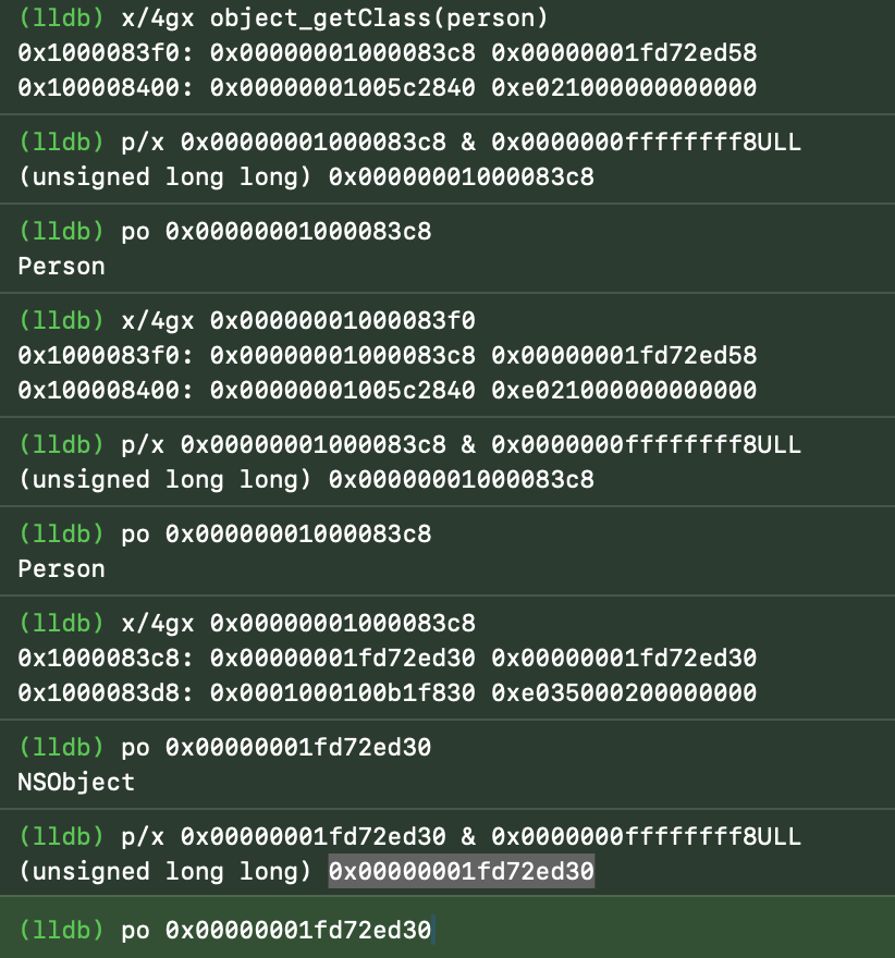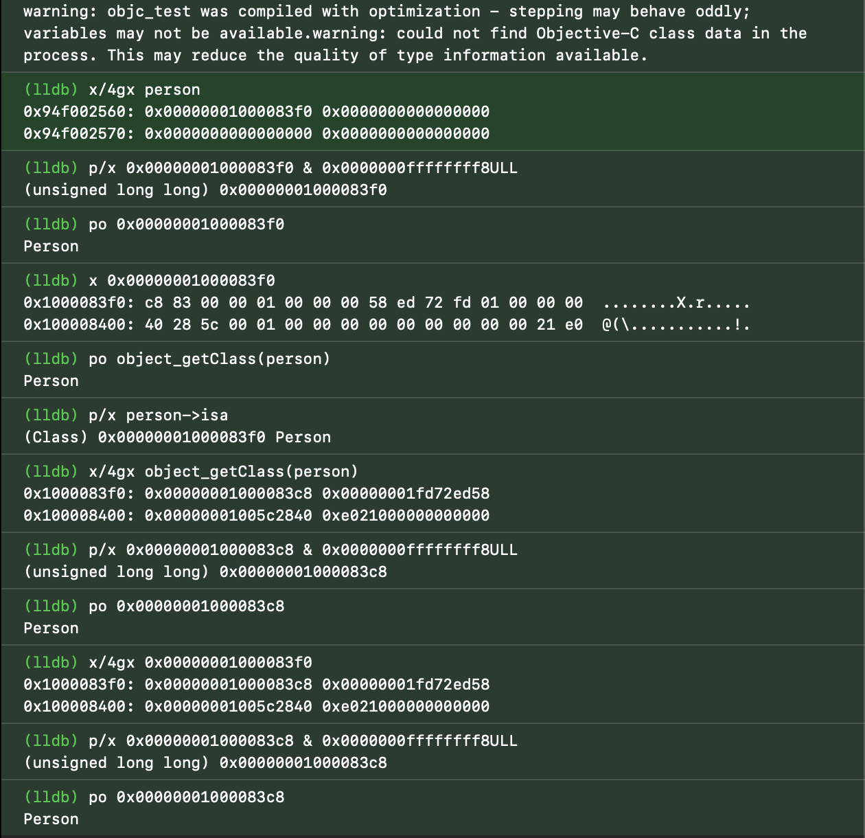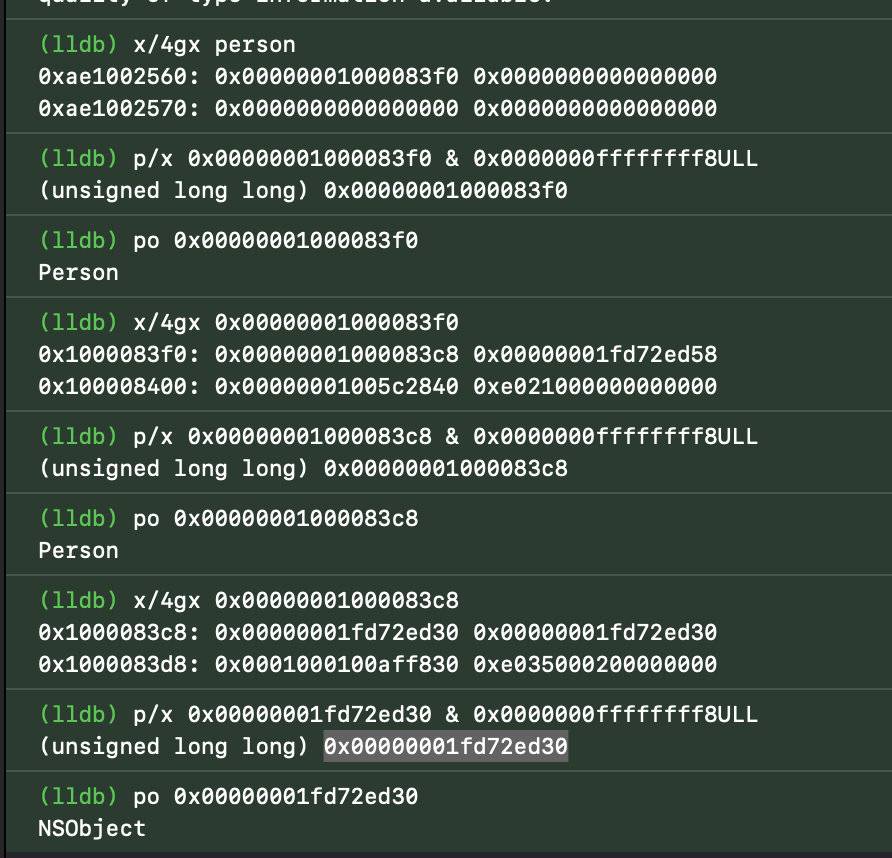//第一个成员并不是一个新的 `isa`,而是直接把整个 `NSObject_IMPL` 结构体原样嵌入进来并命名为 `NSObject_IVARS`由于 NSObject_IMPL 内部只有一个 Class isa 成员,所以 Person_IMPL的第一个字段在内存上就是一个 Class isa