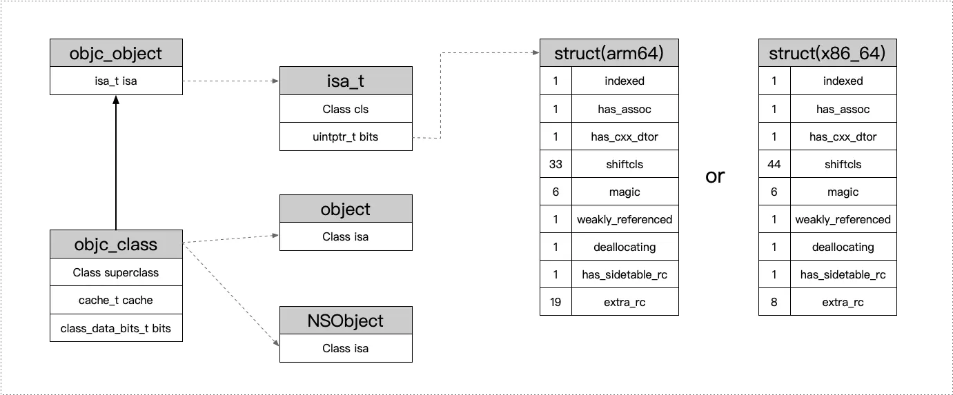 initInstanceIsa方法,这里面初始化 isa 指针的时候,我们是通过 isa_t类型初始化的。 - 在 NSObject 中定义的 isa 类型是 Class,这是需要做一个强制转换的,目的是让开发人员清晰明确。