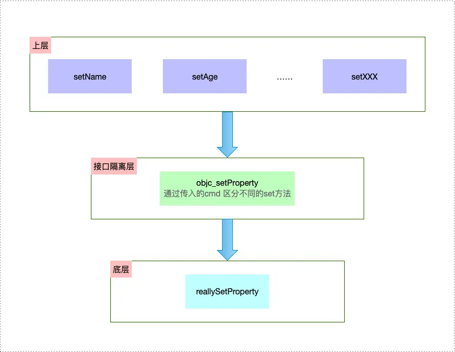 objc_setProperty方法的目的适用于关联 上层的set方法 以及底层的set方法,其本质就是一个接口 -