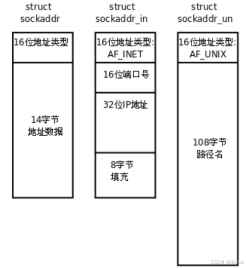 struct sockaddr、struct sockaddr_in 和 struct sockaddr_un 是三个紧密相关的数据结构,用于传递套接字地址信息 。它们的设计是为了让套接字API(如bind、connect、accept)能够统一处理不同协议族的地址(IPv4、IPv6、Unix域等)。