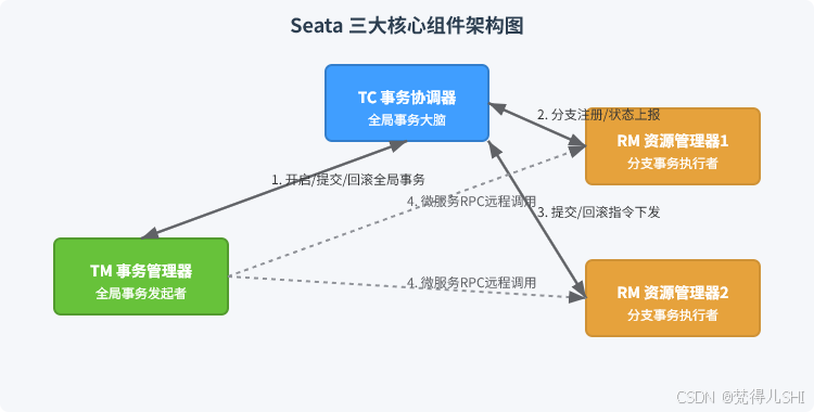 这里先给大家配上 Seata 核心架构图,一眼看懂组件间的协同关系: