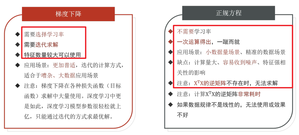 线性回归:正规方程和梯度下降法(正规方程:一步算出,但前提是要有逆;)
