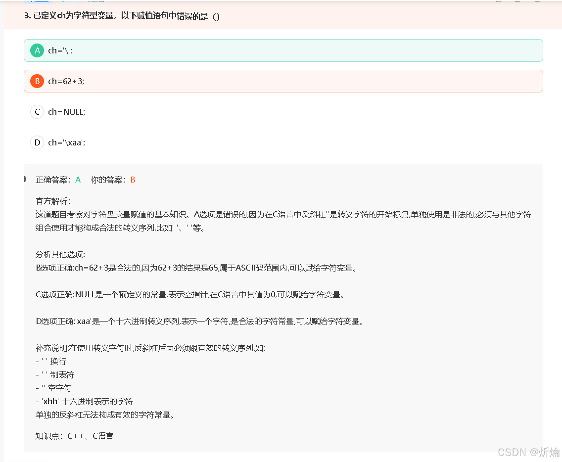 (4)双引号不能赋值,"a"是const char*,不能用字符串给字符常量赋值