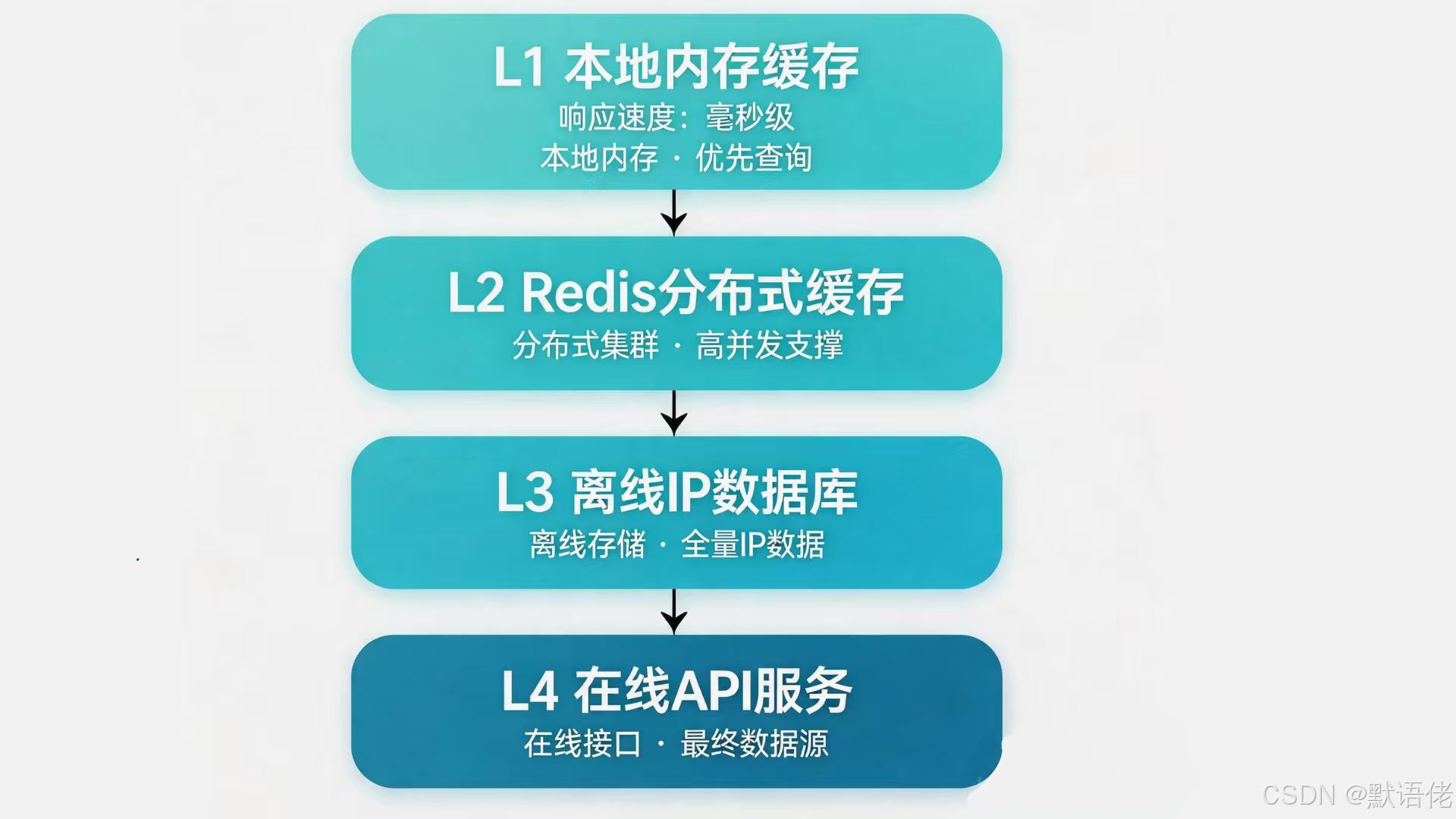推荐 L1 内存缓存(LRU 策略,延迟 <0.1ms)→ L2 Redis 分布式缓存(延迟 1-5ms)→ L3 本地特征库(延迟 <1ms)→ L4 外部数据接口(延迟 50-200ms)的多级架构。