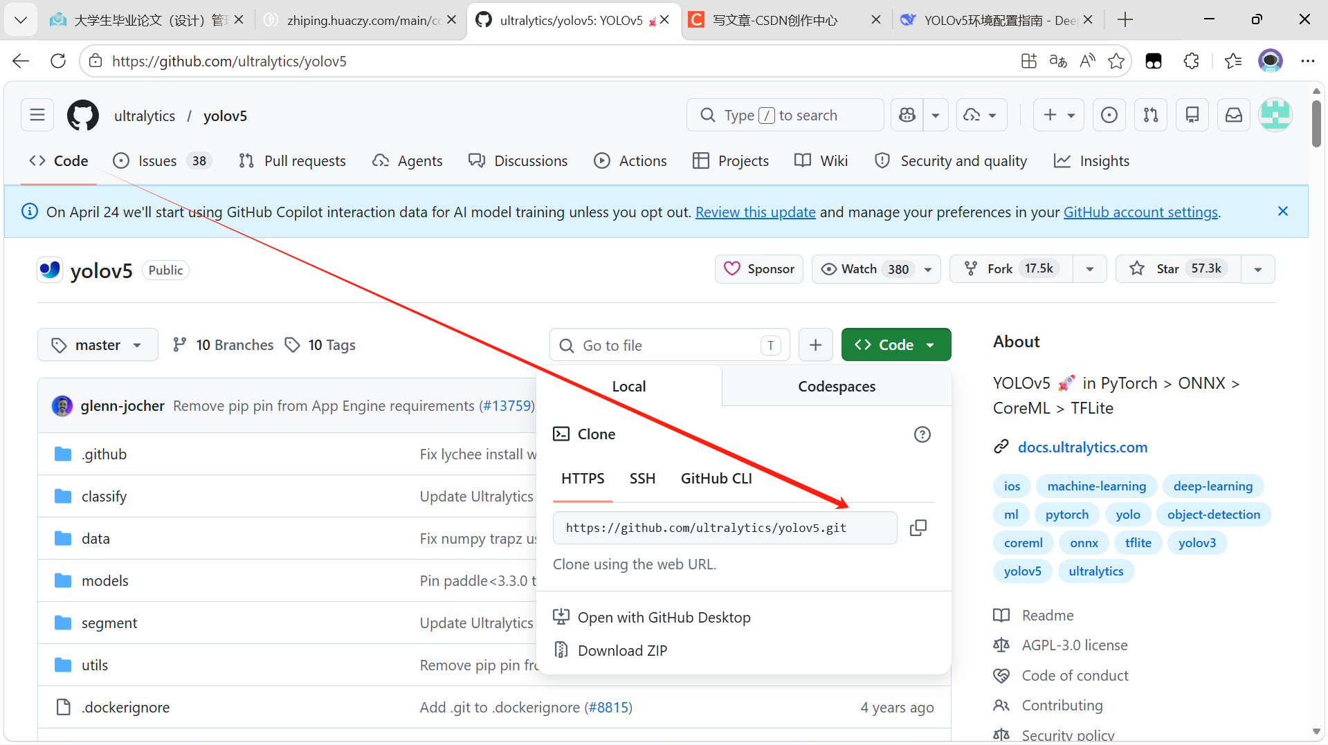 1️⃣ 第一步:在 GitHub 上找到 YOLOv5 仓库并克隆到本地
