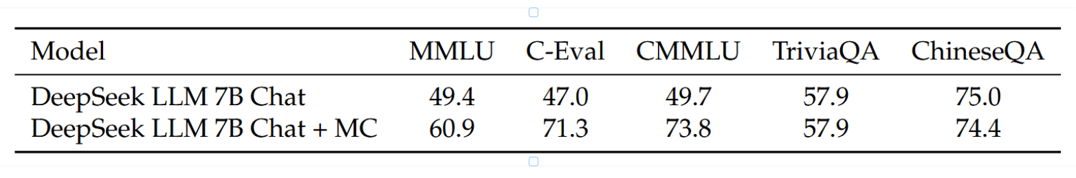 因此,我们选择在预训练和微调阶段均排除MC数据,因为包含这些数据会导致对基准的过拟合,且无助于模型实现真正的智能。
