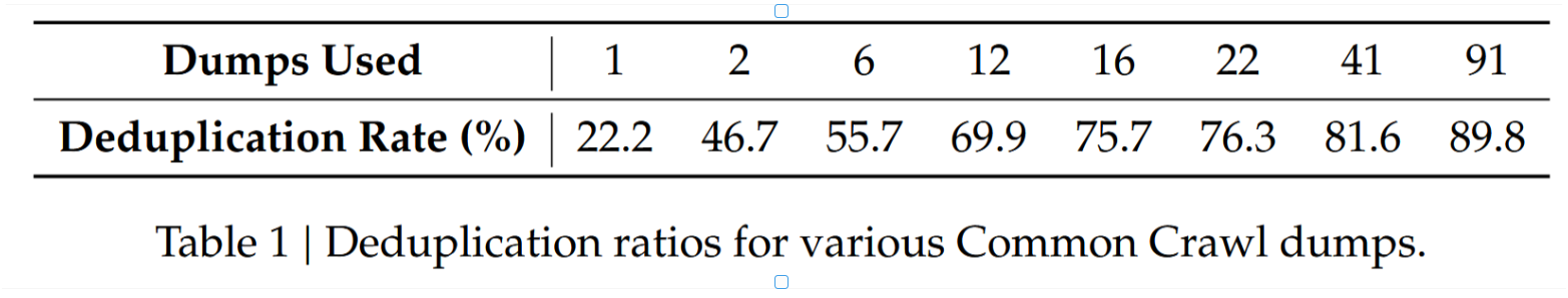 表1 | 各Common Crawl数据集的去重率。