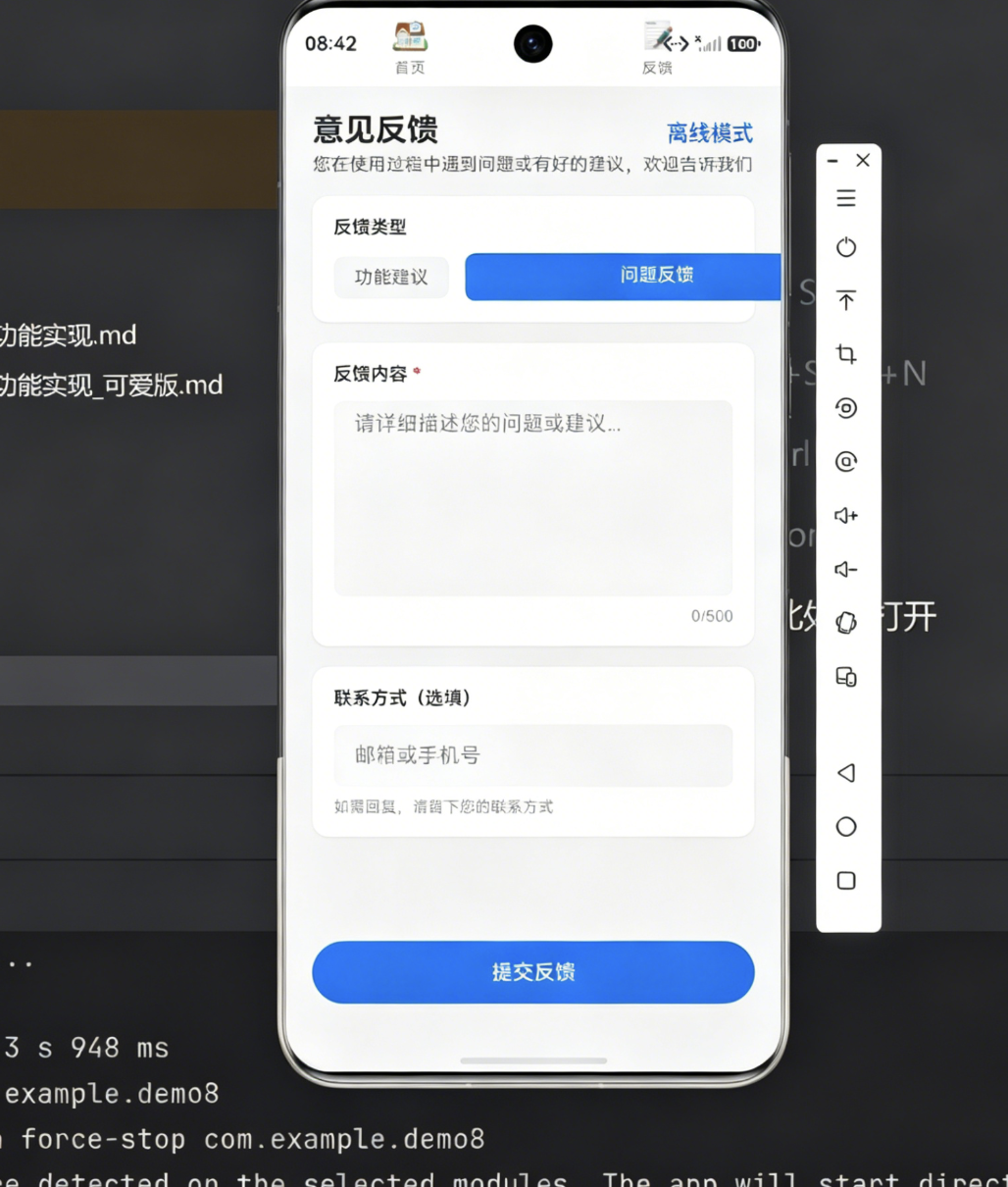 测试步骤:在离线状态下提交用户反馈,然后恢复网络连接,检查反馈是否成功同步到服务器。